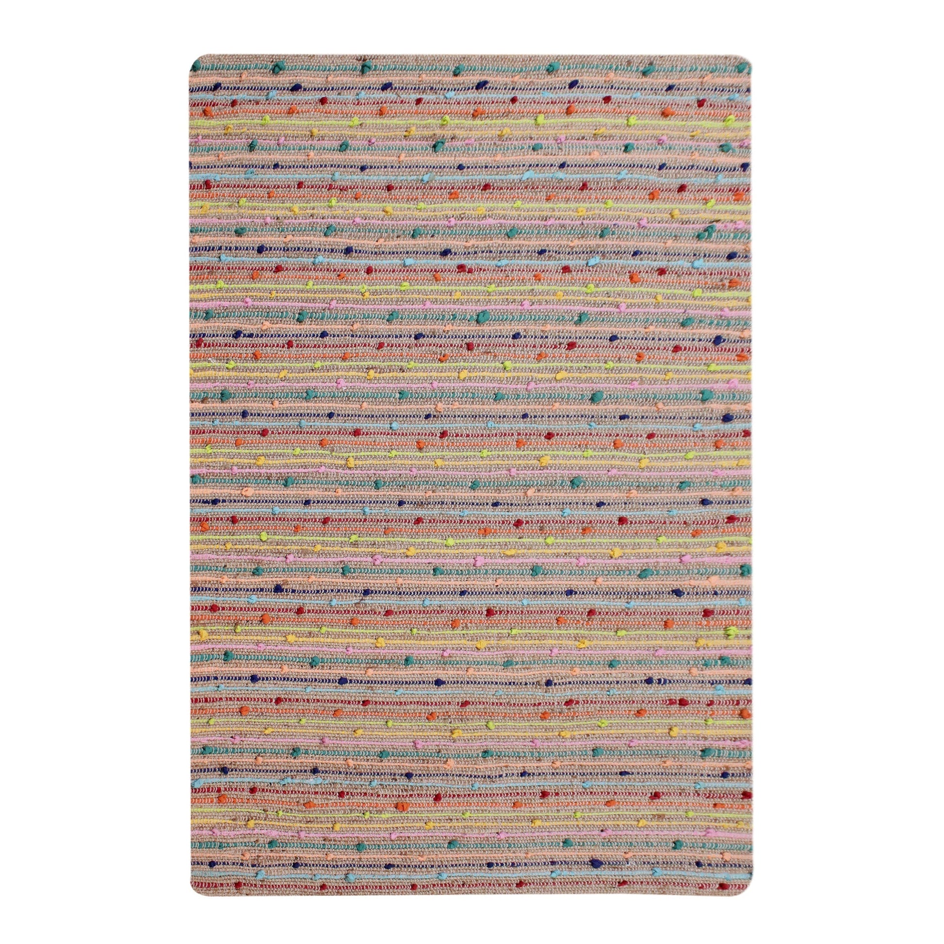 Made from the natural fibres of jute and cotton, this hand woven area rug is collected to give you a beautiful floor covering that is sustainable and soft to the touch. Constructed in pop colors; the Berries Rug us perfect as an addition to a contemporary or classic lounge room or as an entry or corridor rug.